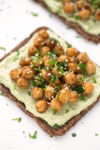Estos picatostes de aguacate y hummus de garbanzos son una opción sabrosa, sana y nutritiva para el desayuno o la merienda, así como para una