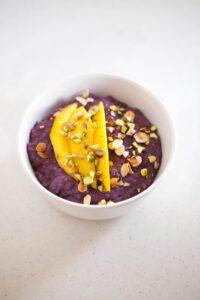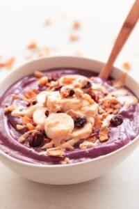 Tazón de Acai, desayuno aromático o merienda. Solo requiere 3 o 4 ingredientes y está lista en unos 5 minutos. Disfruta de tus complementos favoritos.