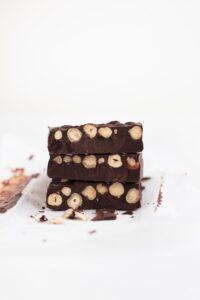 Turrón vegano de chocolate, la versión vegetal de este postre navideño español, elaborado con tan solo 3 ingredientes: chocolate negro, aceite de coco y avellanas.