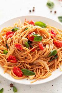 La pasta aglio e olio (también conocida como spaghetti aglio e olio) es la receta de pasta más fácil que puedes hacer. Es muy sabroso