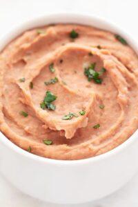Frijoles fritos, una receta sencilla que solo requiere de unos pocos ingredientes. Es un dip delicioso, pero también se puede usar para hacer todo tipo